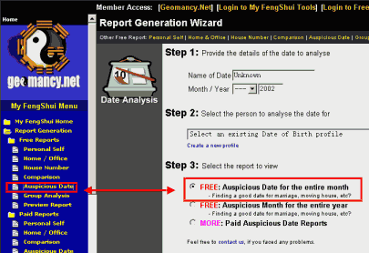 About the Auspicious Date for Entire Month Reports at Geomancy.Net