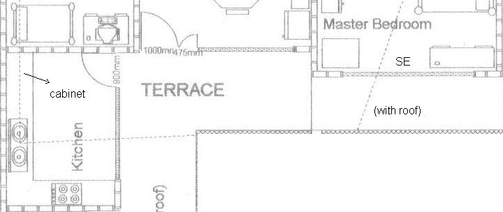 This 'missing area' lies in the kitchen (which has tiled floor and roof) and terrace (with roof). Please see "Protusion in SE.jpg". Placing a lamp post at the corner is almost impossible because there is attach-on-wall cabinet on the kitchen wall. As for using mirrors, I can only attach on 1 side wall because the other side already has the cabinet. If I cut the protusion, it means major renovation because the foundation & the roof must be changed. Do you have any other cure?
