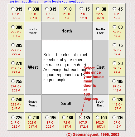 Since your house is located at 160 degrees, then select 165 degrees since your house is considered as between the compass direction 157.5 degrees to 172.4 degrees.